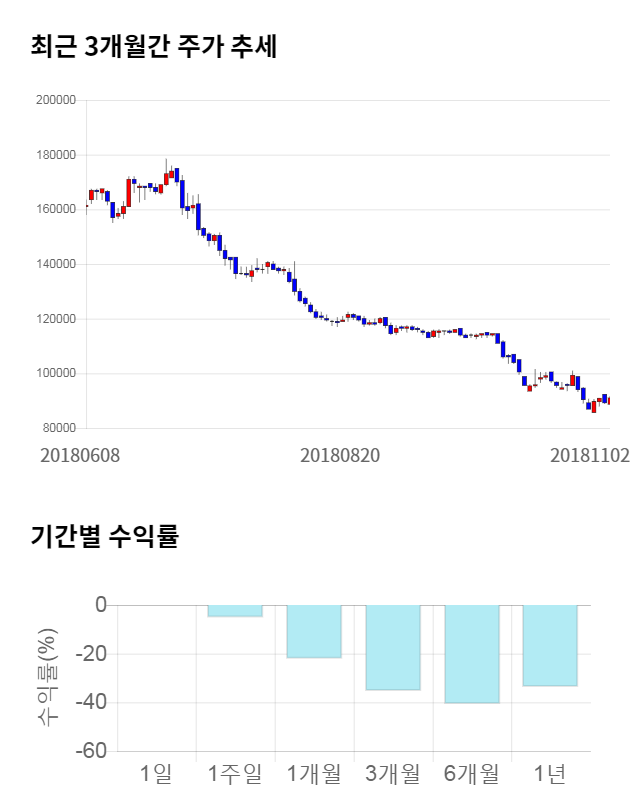[그림 1] 최근 3개월 간 주가 추세 및 기간별 수익률