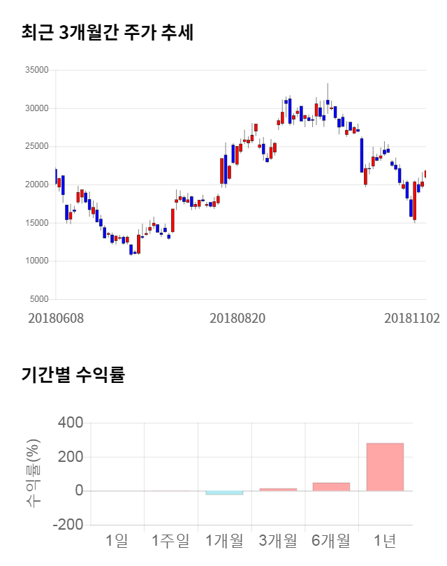 [그림 1] 최근 3개월 간 주가 추세 및 기간별 수익률