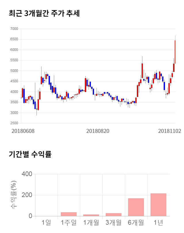 [그림 1] 최근 3개월 간 주가 추세 및 기간별 수익률