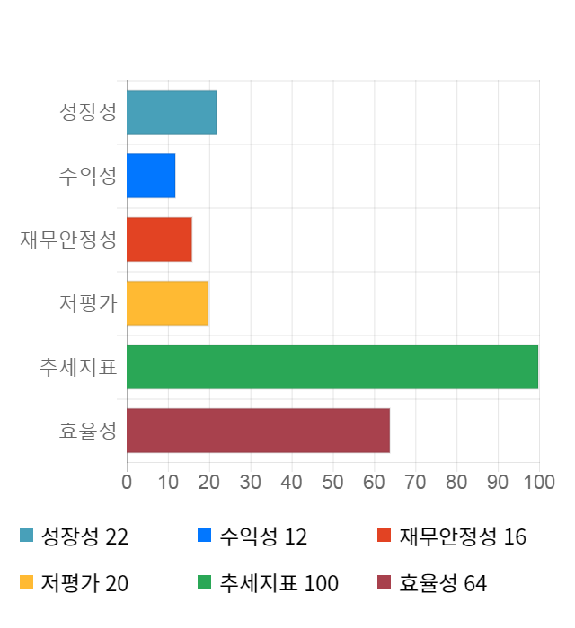 AI 인공지능 종목 분석 시스템을 이용해 성장성, 수익성, 효율성, 안전성, 저평가성, 추세 등 주가 수익률에 영향을 줄 수 있는 6가지 핵심 투자 지표를 점수화하여 종목의 투자 매력도를 계산해보았다.