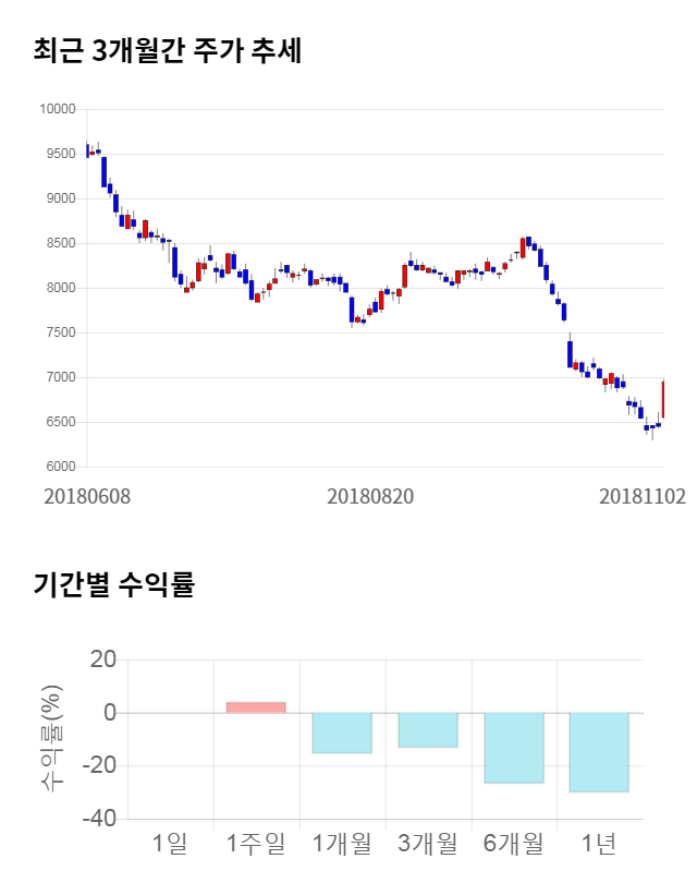 [그림 1] 최근 3개월 간 주가 추세 및 기간별 수익률