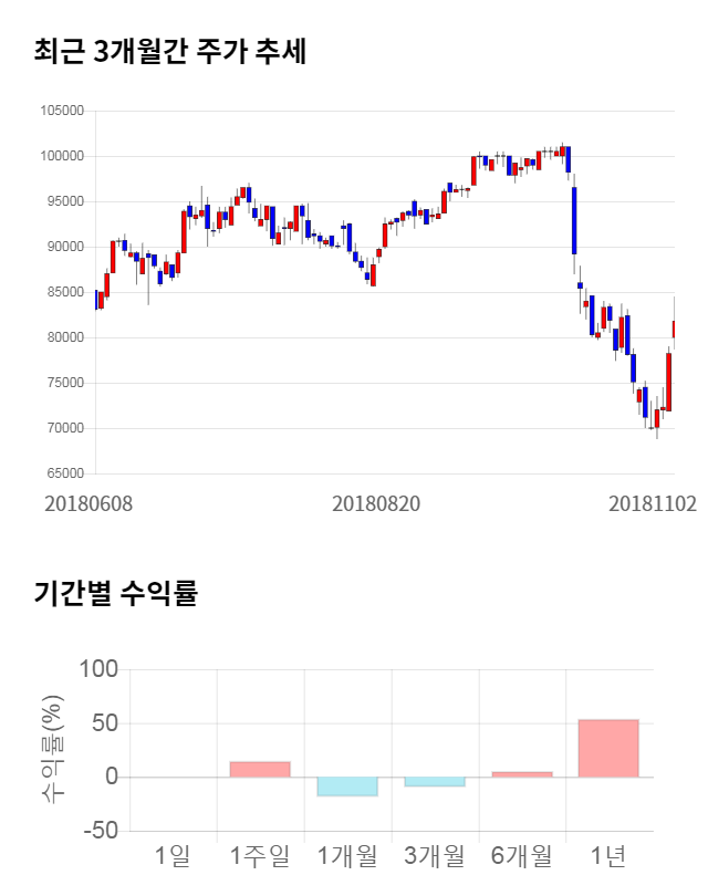 [그림 1] 최근 3개월 간 주가 추세 및 기간별 수익률