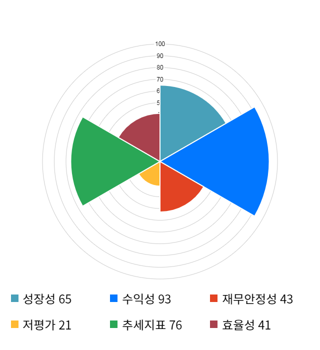 AI 인공지능 종목 분석 시스템을 이용해 성장성, 수익성, 효율성, 안전성, 저평가성, 추세 등 주가 수익률에 영향을 줄 수 있는 6가지 핵심 투자 지표를 점수화하여 종목의 투자 매력도를 계산해보았다.