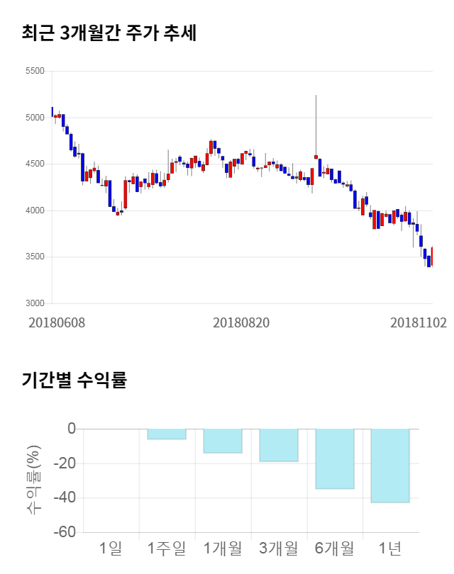 [그림 1] 최근 3개월 간 주가 추세 및 기간별 수익률