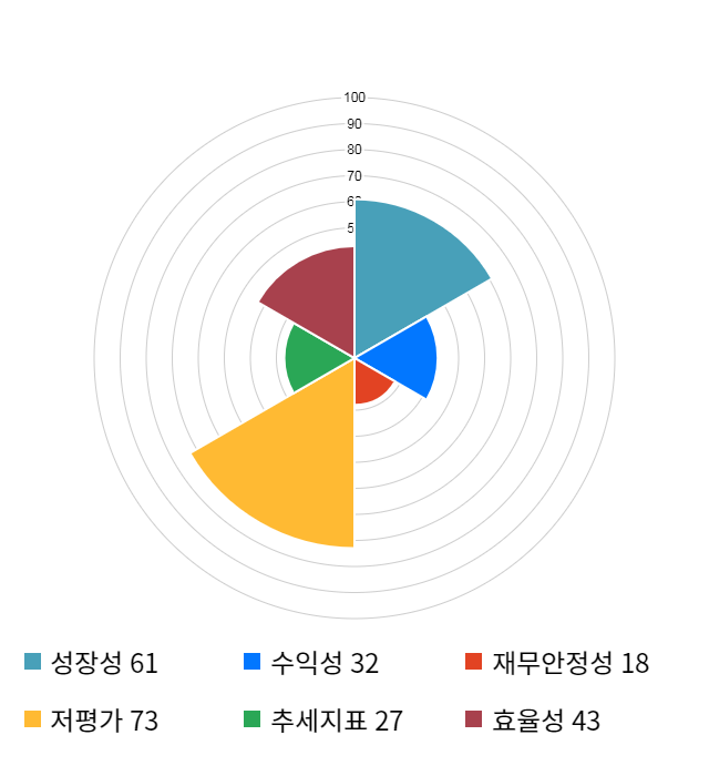 AI 인공지능 종목 분석 시스템을 이용해 성장성, 수익성, 효율성, 안전성, 저평가성, 추세 등 주가 수익률에 영향을 줄 수 있는 6가지 핵심 투자 지표를 점수화하여 종목의 투자 매력도를 계산해보았다.