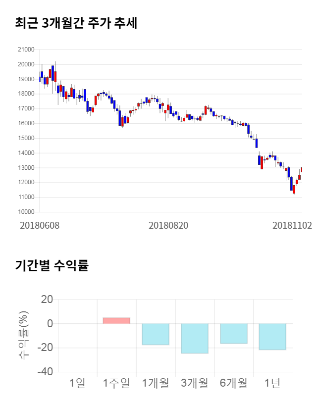 [그림 1] 최근 3개월 간 주가 추세 및 기간별 수익률