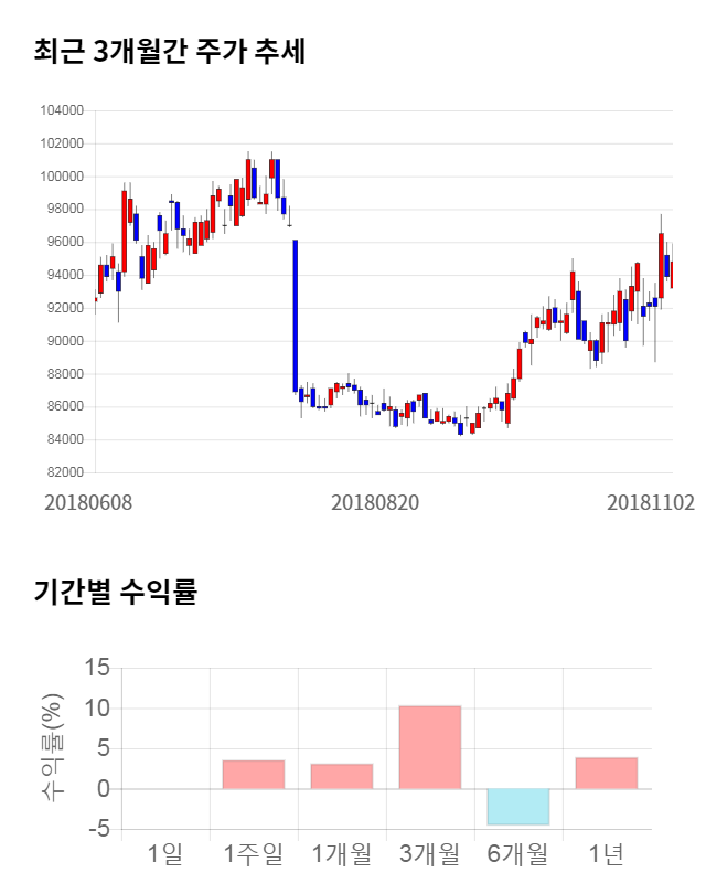 [그림 1] 최근 3개월 간 주가 추세 및 기간별 수익률