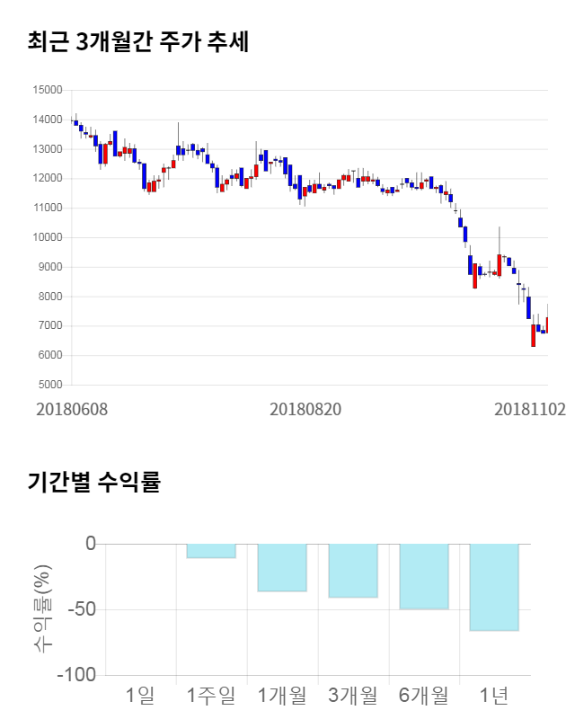 [그림 1] 최근 3개월 간 주가 추세 및 기간별 수익률