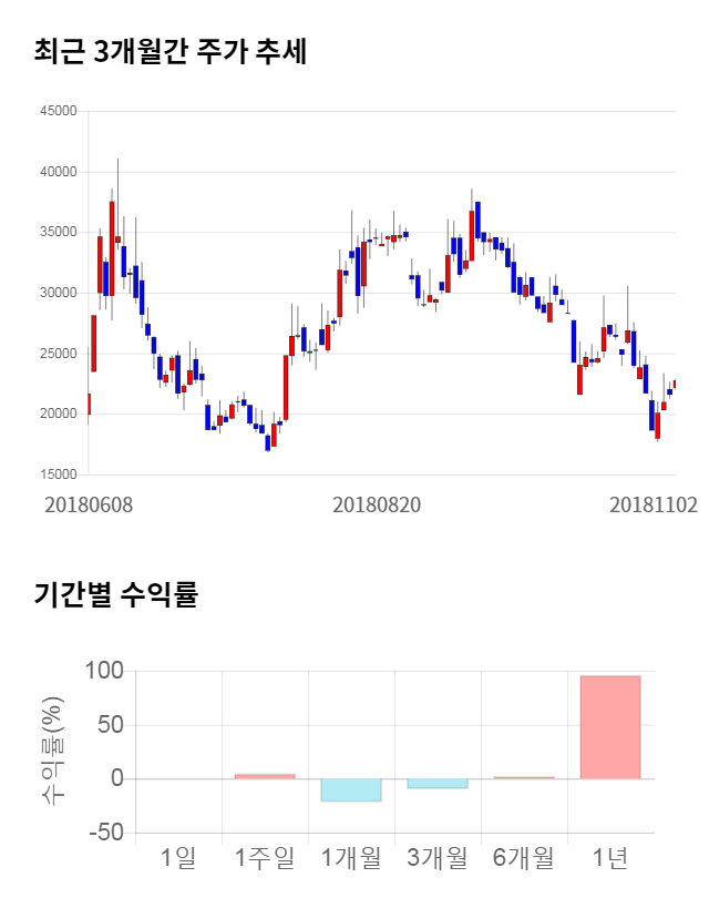 [그림 1] 최근 3개월 간 주가 추세 및 기간별 수익률