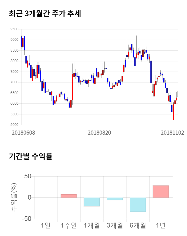[그림 1] 최근 3개월 간 주가 추세 및 기간별 수익률