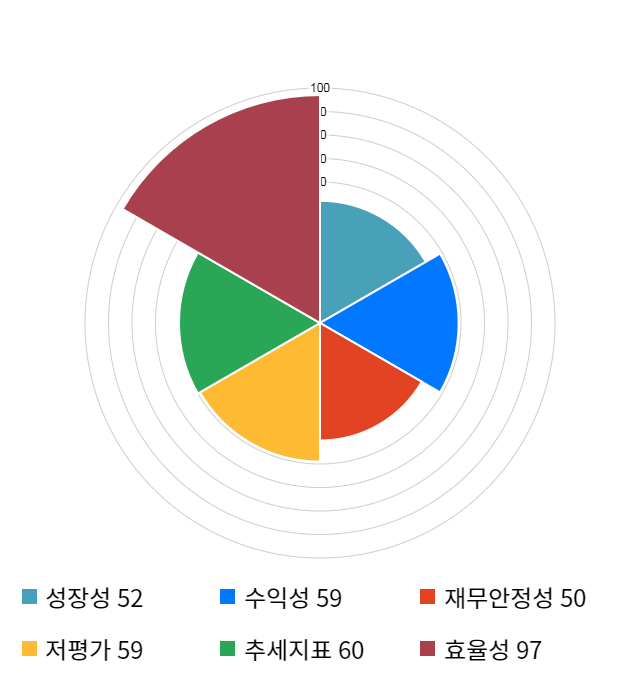 AI 인공지능 종목 분석 시스템을 이용해 성장성, 수익성, 효율성, 안전성, 저평가성, 추세 등 주가 수익률에 영향을 줄 수 있는 6가지 핵심 투자 지표를 점수화하여 종목의 투자 매력도를 계산해보았다.