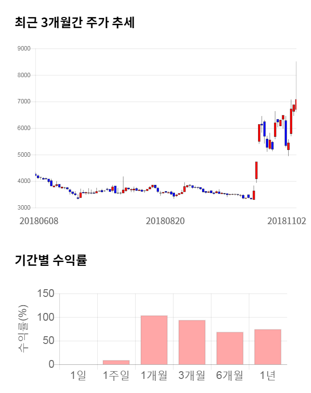[그림 1] 최근 3개월 간 주가 추세 및 기간별 수익률