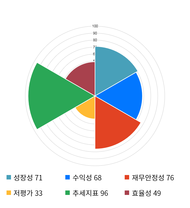 AI 인공지능 종목 분석 시스템을 이용해 성장성, 수익성, 효율성, 안전성, 저평가성, 추세 등 주가 수익률에 영향을 줄 수 있는 6가지 핵심 투자 지표를 점수화하여 종목의 투자 매력도를 계산해보았다.