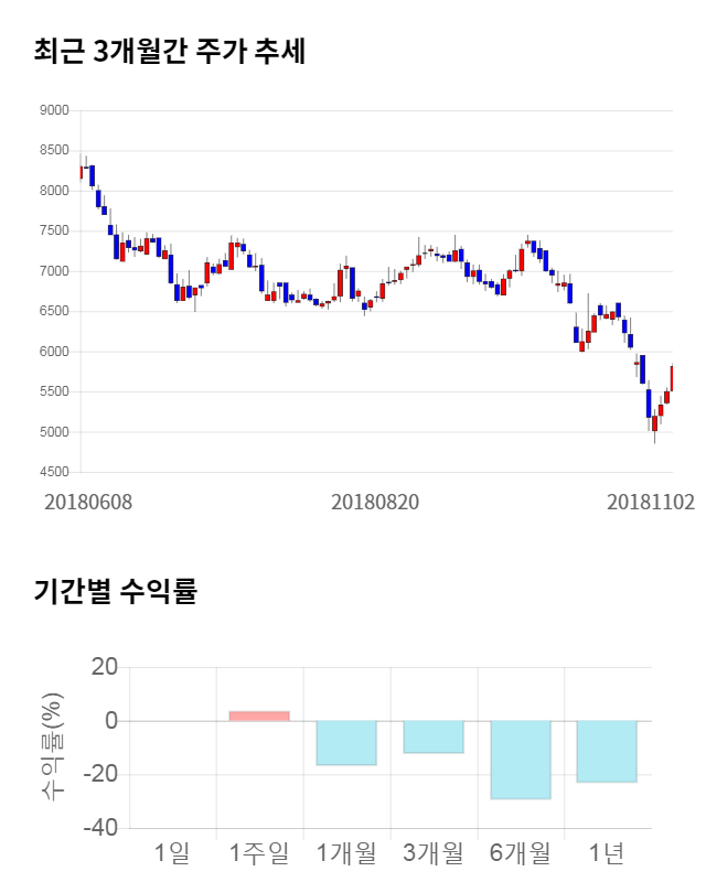 [그림 1] 최근 3개월 간 주가 추세 및 기간별 수익률
