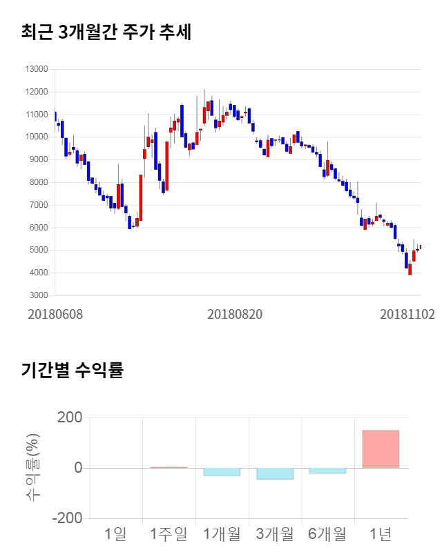 [그림 1] 최근 3개월 간 주가 추세 및 기간별 수익률