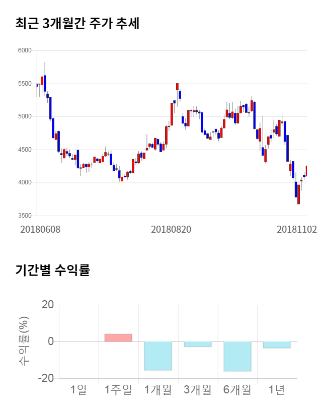[그림 1] 최근 3개월 간 주가 추세 및 기간별 수익률
