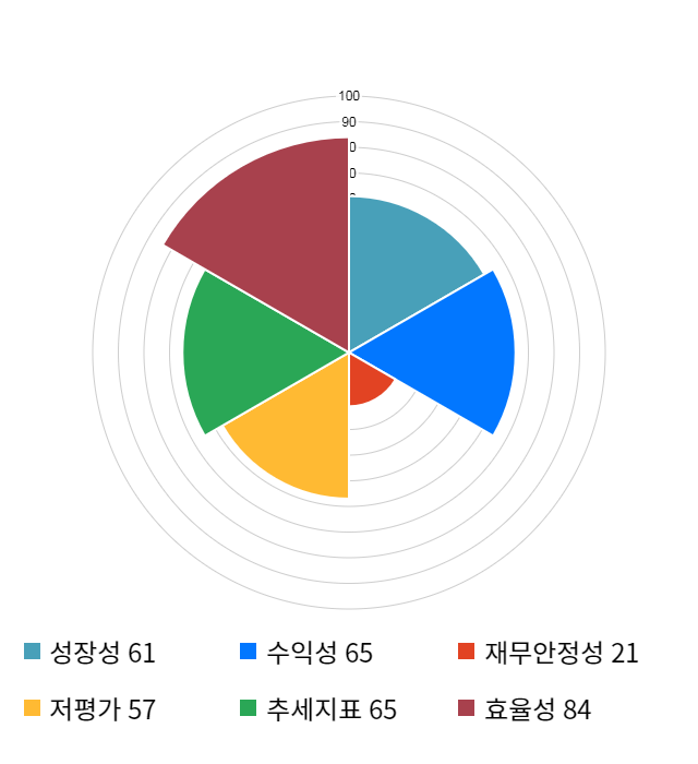 AI 인공지능 종목 분석 시스템을 이용해 성장성, 수익성, 효율성, 안전성, 저평가성, 추세 등 주가 수익률에 영향을 줄 수 있는 6가지 핵심 투자 지표를 점수화하여 종목의 투자 매력도를 계산해보았다.