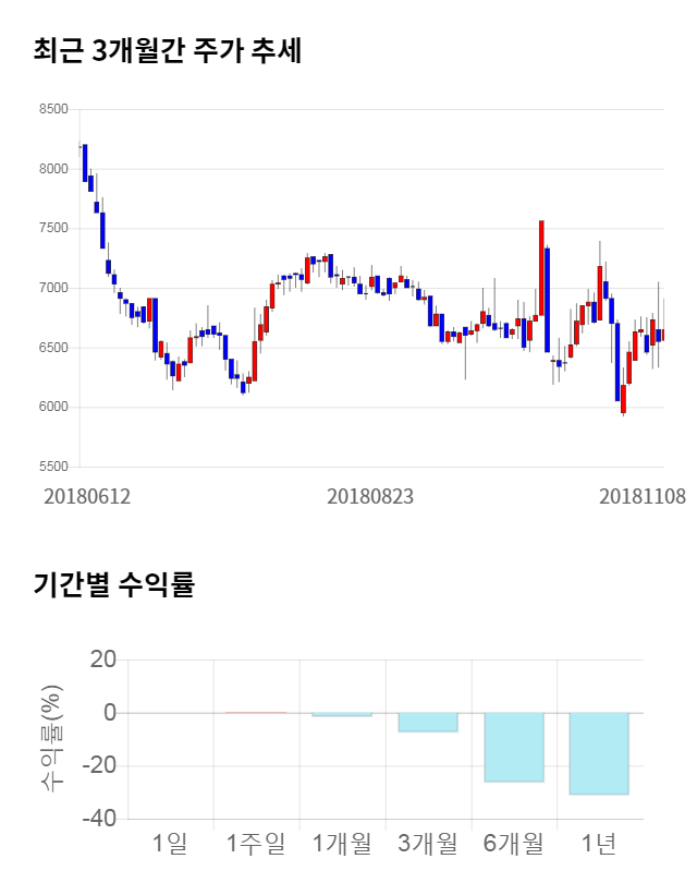 [그림 1] 최근 3개월 간 주가 추세 및 기간별 수익률