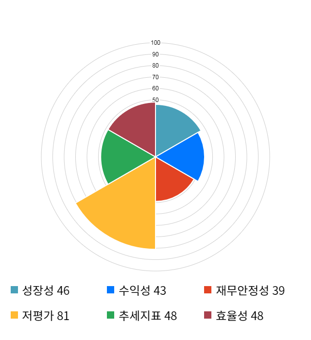 AI 인공지능 종목 분석 시스템을 이용해 성장성, 수익성, 효율성, 안전성, 저평가성, 추세 등 주가 수익률에 영향을 줄 수 있는 6가지 핵심 투자 지표를 점수화하여 종목의 투자 매력도를 계산해보았다.