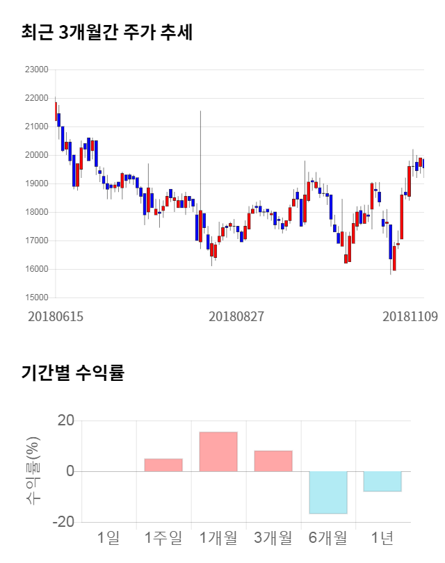 [그림 1] 최근 3개월 간 주가 추세 및 기간별 수익률