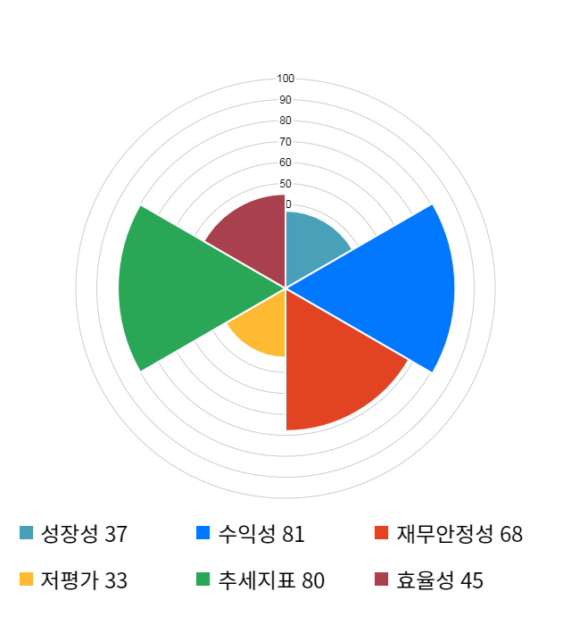 AI 인공지능 종목 분석 시스템을 이용해 성장성, 수익성, 효율성, 안전성, 저평가성, 추세 등 주가 수익률에 영향을 줄 수 있는 6가지 핵심 투자 지표를 점수화하여 종목의 투자 매력도를 계산해보았다.