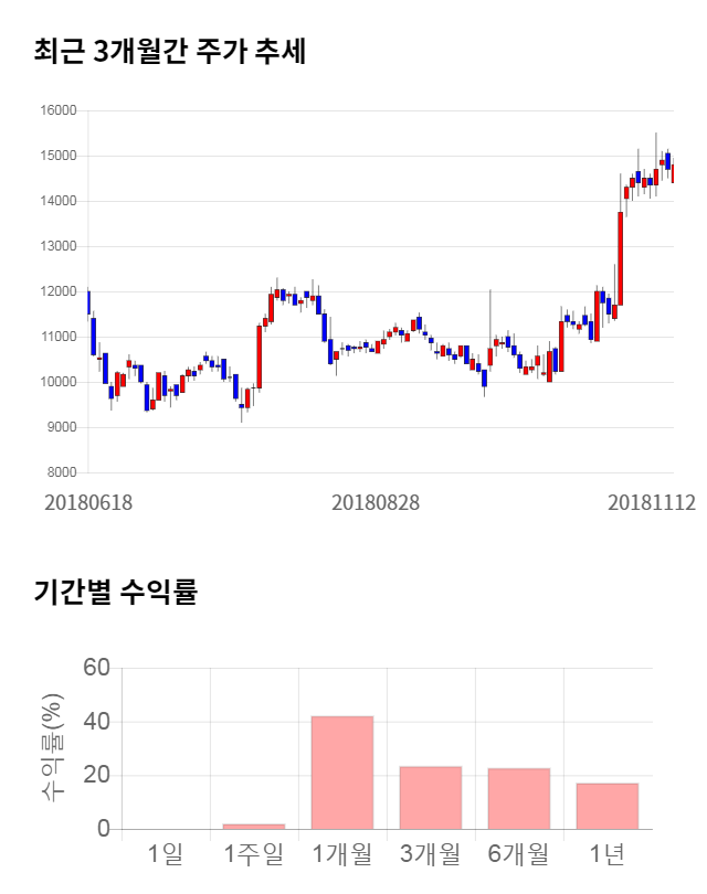 [그림 1] 최근 3개월 간 주가 추세 및 기간별 수익률