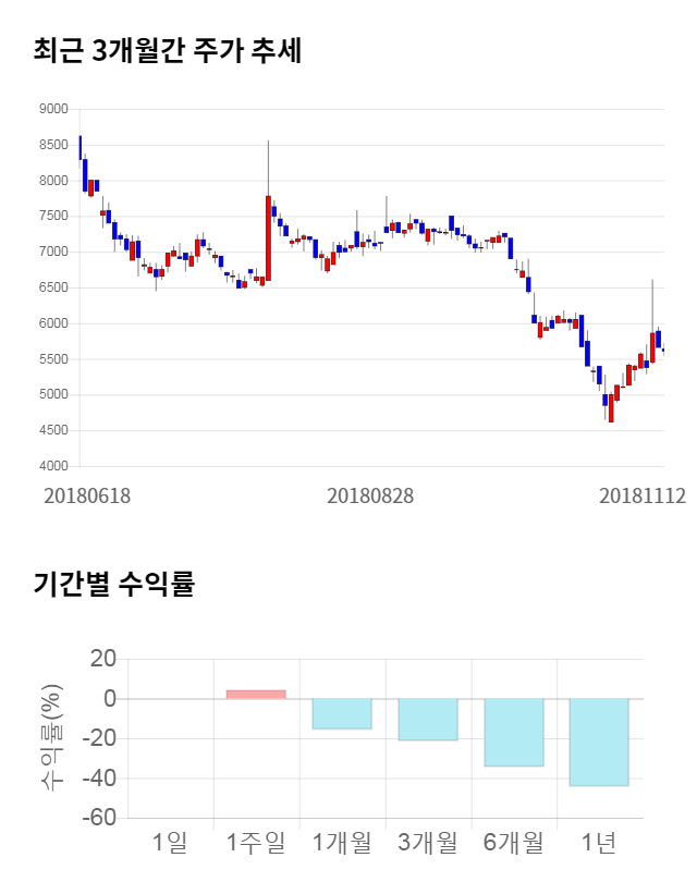 [그림 1] 최근 3개월 간 주가 추세 및 기간별 수익률