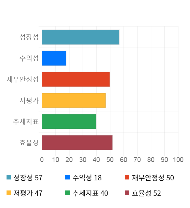 성장성 점수는 기업의 실적이 전년 동기 대비 얼마나 증가했는지를 나타낸 지표로 기업의 이익 성장 추세를 나타낸다.