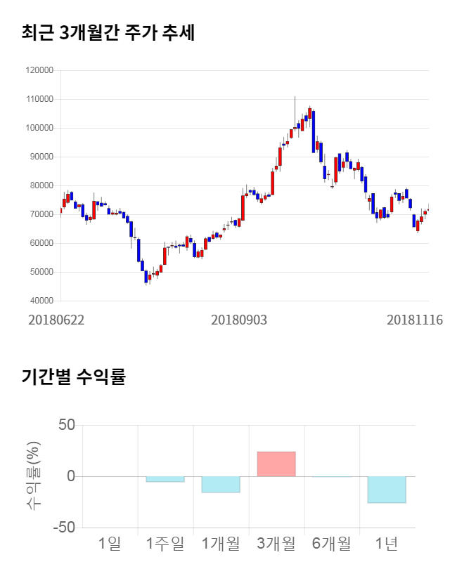 [그림 1] 최근 3개월 간 주가 추세 및 기간별 수익률