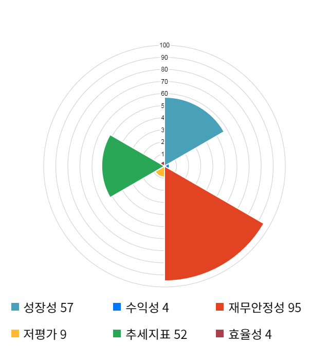AI 인공지능 종목 분석 시스템을 이용해 성장성, 수익성, 효율성, 안전성, 저평가성, 추세 등 주가 수익률에 영향을 줄 수 있는 6가지 핵심 투자 지표를 점수화하여 종목의 투자 매력도를 계산해보았다.