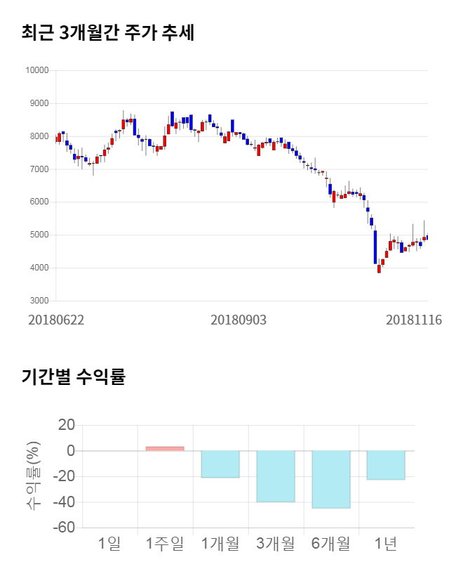 [그림 1] 최근 3개월 간 주가 추세 및 기간별 수익률