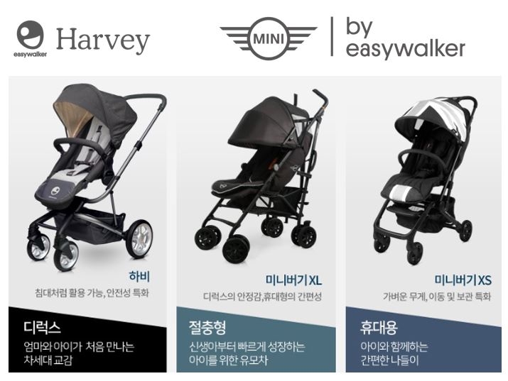 네덜란드 브랜드 이지워커(easywalker)의 유모차 라인업의 강세가 뚜렷하다. "아이는 가장 편안하고, 엄마는 가장 다루기 쉬운 유모차의 본질적인 부분에 중점을 둔다."라는 브랜드 이념을 가지고 유모차를 선보이고 있는 이지워커는 디럭스 유모차, 절충형 유모차, 휴대용 유모차 라인업을 구축하여 소비자가 원하는 형태의 유모차를 선택할 수 있다. 국내 유모차 시장은 신제품 출시가 많을 뿐 아니라 컬러 및 기능에 대한 유행 변화 속도도 빠른 편이지만, 2014년 미니버기 유모차를 국내에 처음 선보이며 등장한 이지워커는 매년 꾸준한 성장률을 보이며 유모차 시장 내 리더로 자리 잡았다.