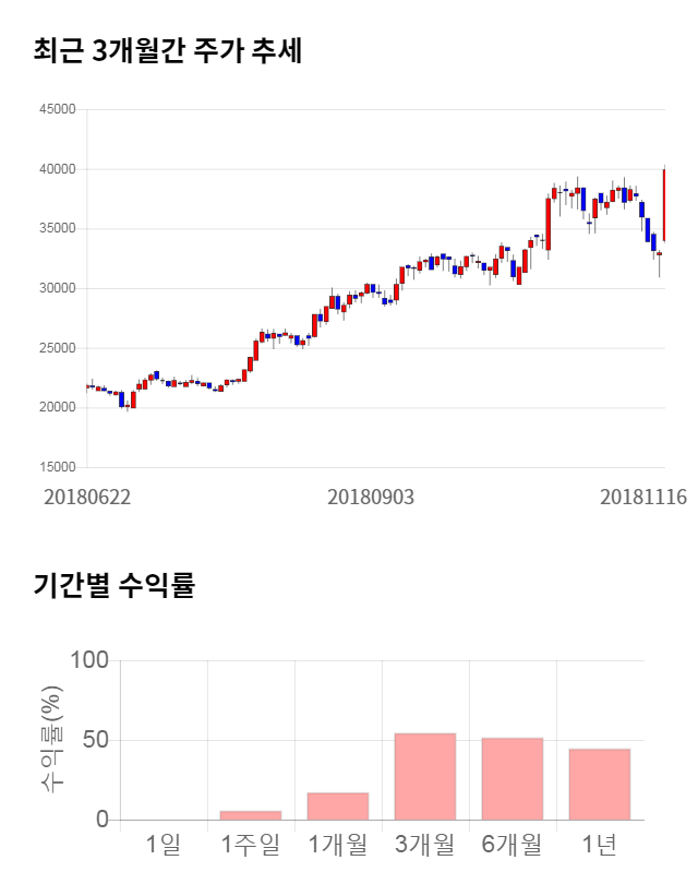 주가 모멘텀은 좋은 편에 속했다. 최근 3개월 수익률은 54.65%의 상승폭을 기록했다. 최근 1개월 수익률 또한 17.35% 상승하며 좋은 모멘텀을 보이고 있다.