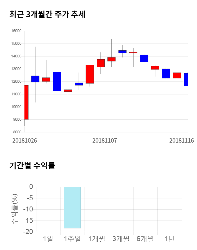 [그림 1] 최근 3개월 간 주가 추세 및 기간별 수익률