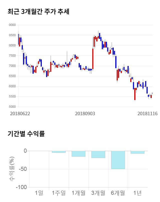 [그림 1] 최근 3개월 간 주가 추세 및 기간별 수익률