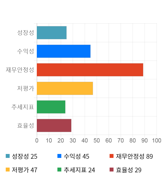 AI 인공지능 종목 분석 시스템을 이용해 성장성, 수익성, 효율성, 안전성, 저평가성, 추세 등 주가 수익률에 영향을 줄 수 있는 6가지 핵심 투자 지표를 점수화하여 종목의 투자 매력도를 계산해보았다.