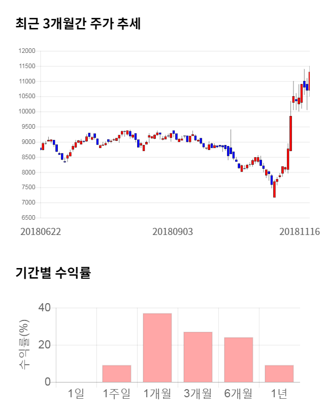 [그림 1] 최근 3개월 간 주가 추세 및 기간별 수익률
