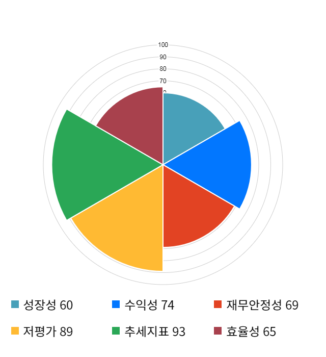 AI 인공지능 종목 분석 시스템을 이용해 성장성, 수익성, 효율성, 안전성, 저평가성, 추세 등 주가 수익률에 영향을 줄 수 있는 6가지 핵심 투자 지표를 점수화하여 종목의 투자 매력도를 계산해보았다.