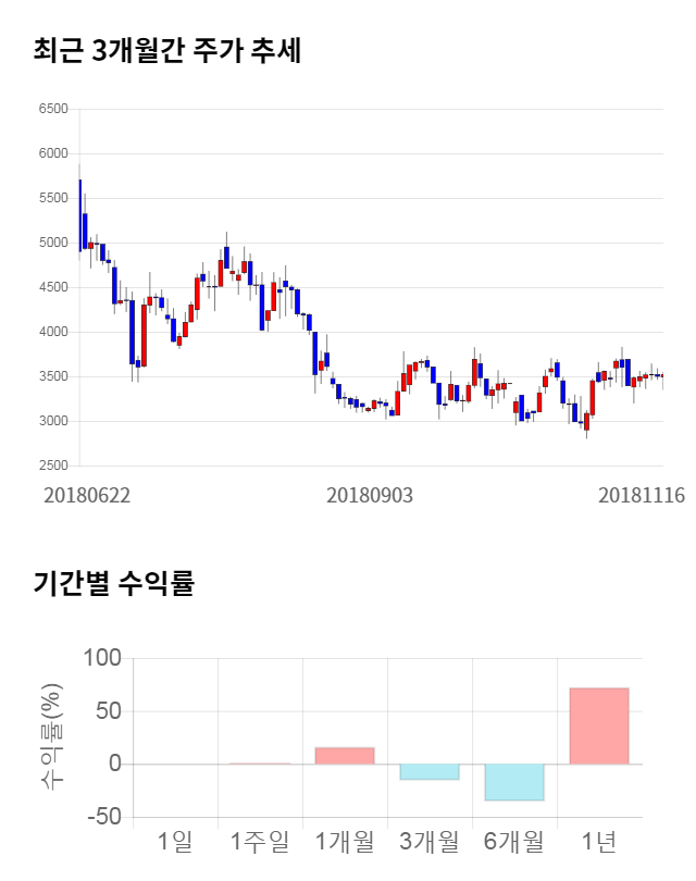 [그림 1] 최근 3개월 간 주가 추세 및 기간별 수익률