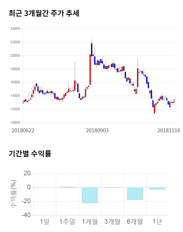 [그림 1] 최근 3개월 간 주가 추세 및 기간별 수익률