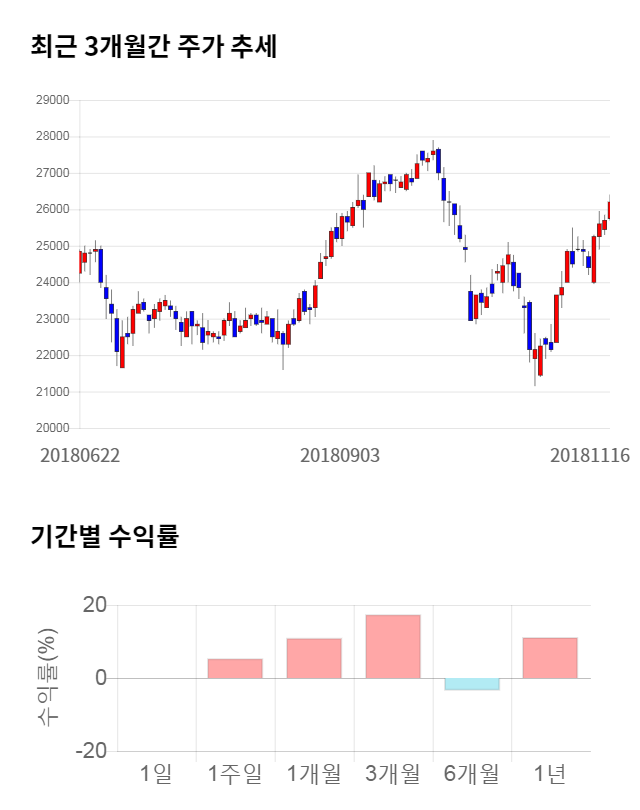 [그림 1] 최근 3개월 간 주가 추세 및 기간별 수익률