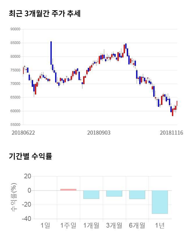[그림 1] 최근 3개월 간 주가 추세 및 기간별 수익률