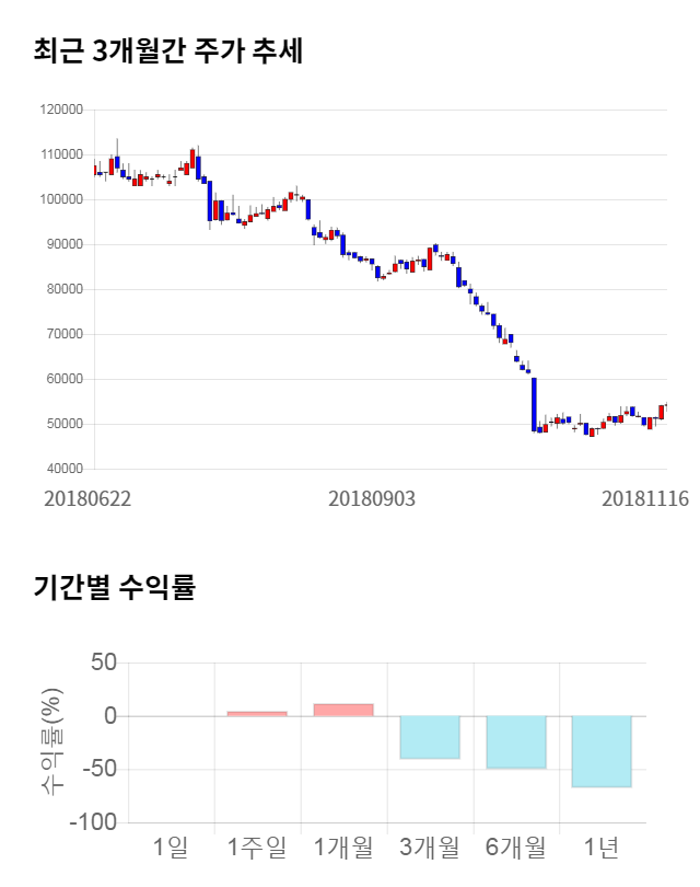 [그림 1] 최근 3개월 간 주가 추세 및 기간별 수익률