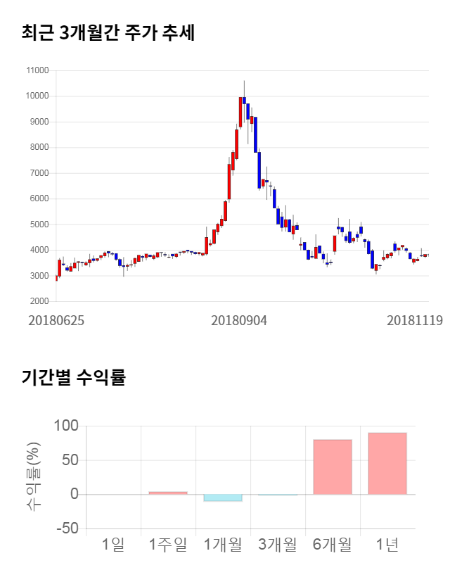 [그림 1] 최근 3개월 간 주가 추세 및 기간별 수익률