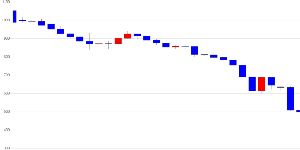 최근 1개월 고점은 1,030원이었으며, 현재 가격은 고점 대비 48.35% 수준이다.