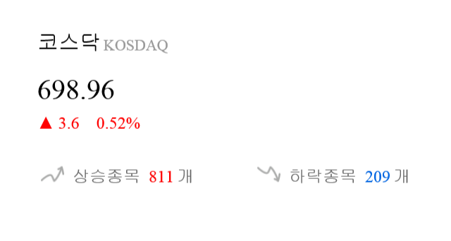 11월 27일 코스닥는 전일 대비 3.6p(0.52%) 상승한 698.96p에 거래를 시작했다.