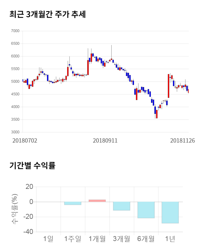 [그림 1] 최근 3개월 간 주가 추세 및 기간별 수익률