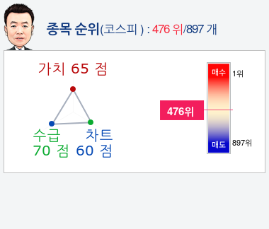 알파고가 가치, 수급, 차트로 평가한 부산산업종목의 현재 종합순위는 코스피 897개 종목 중 469위로, 알파고는 부산산업기업의 차트을 높게 평가 분석하고 있다.