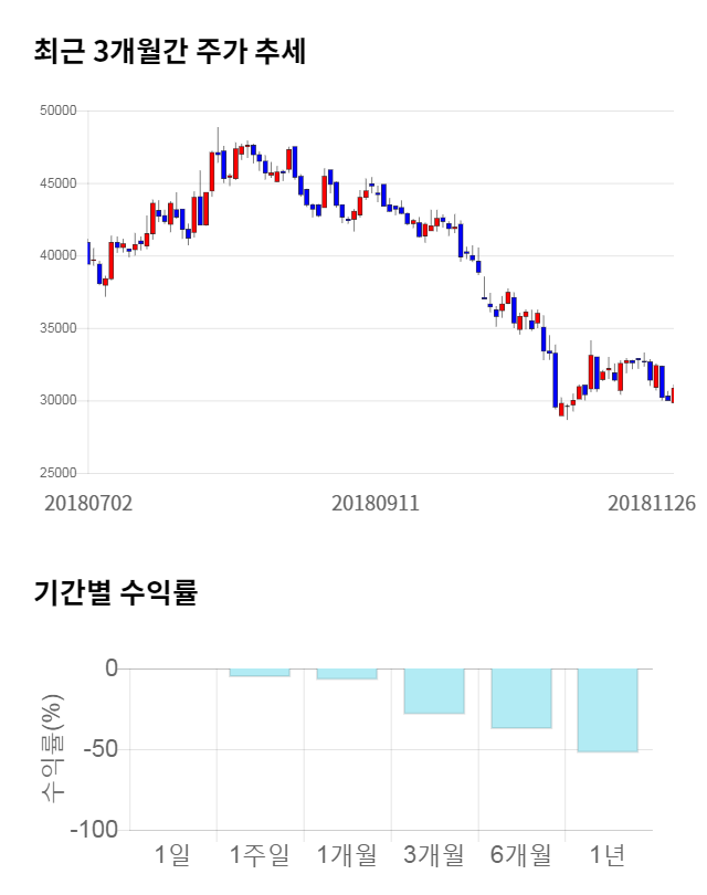 주가 모멘텀은 부진한 편이었다. 최근 6개월 수익률은 -37.68%의 하락폭을 기록했다. 최근 1개월 수익률 또한 -7.22% 하락하며 부진한 모멘텀을 이어가고 있다.