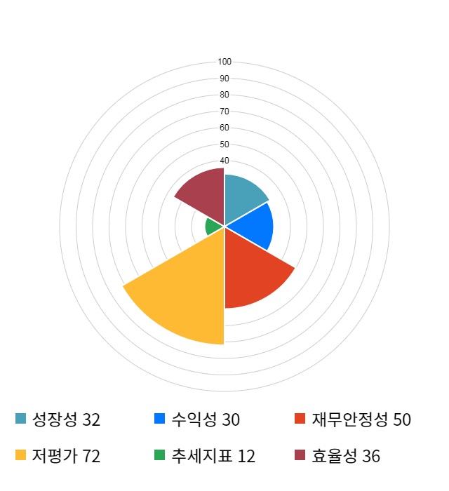 AI 인공지능 종목 분석 시스템을 이용해 성장성, 수익성, 효율성, 안전성, 저평가성, 추세 등 주가 수익률에 영향을 줄 수 있는 6가지 핵심 투자 지표를 점수화하여 종목의 투자 매력도를 계산해보았다.